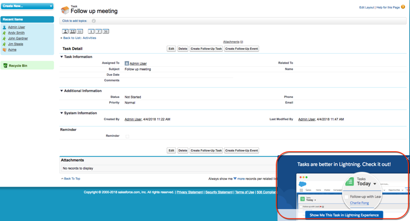 Only users with access to Lightning Experience see the feature prompts.