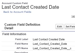 Custom Field in Account to update when Contact is created: