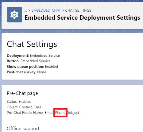 Use the following code in the Code Snippet. doFind and isExactMatch are set to false for Email, First Name and Last Name. But, doCreate is set to true for Email, First Name and Last Name because when the contact record is created, it will have the values passed from these fields. When the Chat is initiated, the contact is searched based on Phone number. If a matching Contact record is found, it will link it to the matched Contact record. Else, it will create a new Contact with the Last Name, First Name, Email and Phone Number entered.
