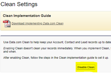2. Click Disable Clean Button.