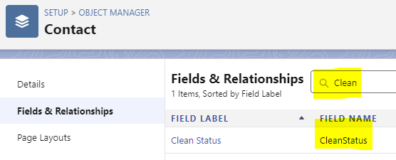 Salesforce Contact CleanStatus Field is part of Data.com.