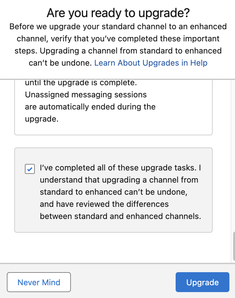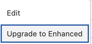 Locate the channel you wish to migrate. Click the Action Menu (dropdown arrow) next to the channel name and select Upgrade to Enhanced.